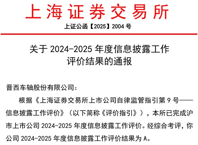 合規(guī)為基 價(jià)值為本 行穩(wěn)致遠(yuǎn)丨晉西車(chē)軸榮獲滬市信息...